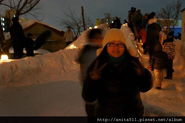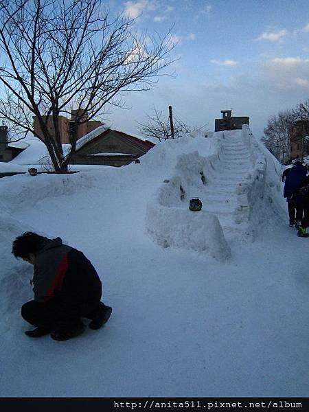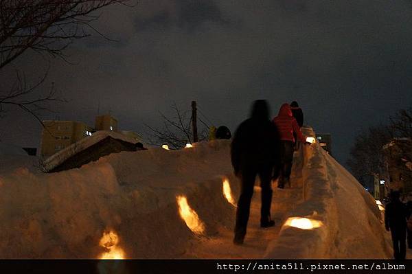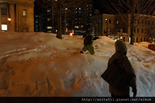 這是在小樽雪燈祭 會場的雪滑梯,我們等晚上開放時再來玩。