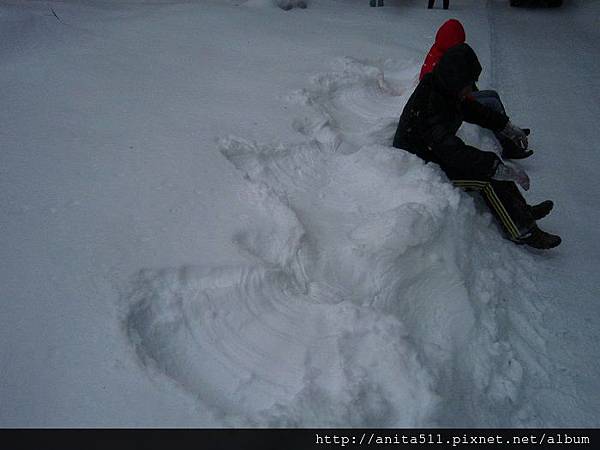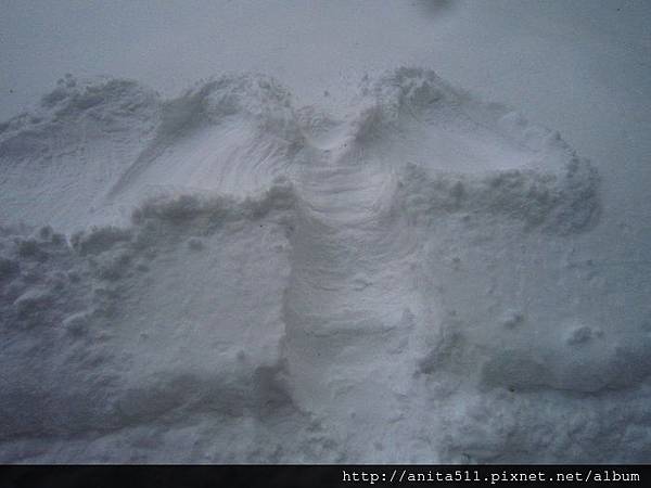 讓我再解釋一下,躺在雪地擺動手腳,照理說 "雪天使" 會變這樣啦。